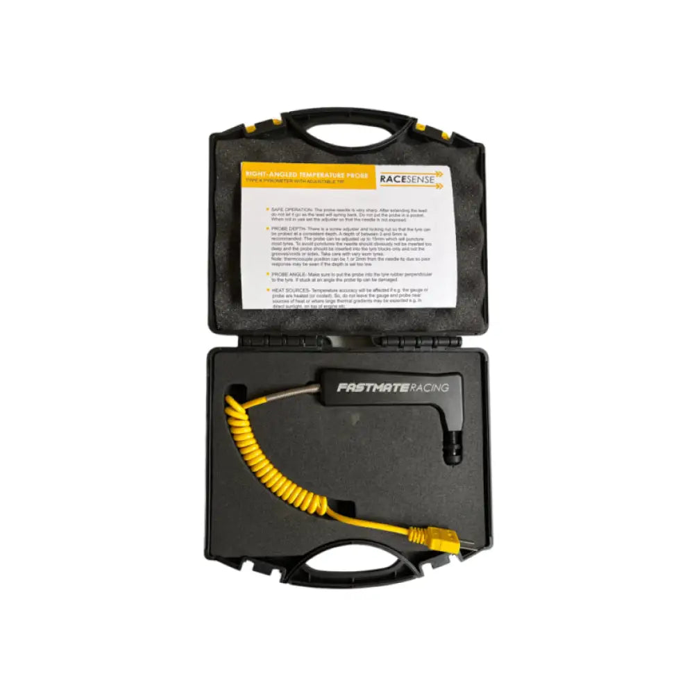 Our right angled adjustable accurate temperature probe (pyrometer) makes it easier to take temperature readings on closed wheel vehicles. CNC Machined aluminium body. Comes with hard carry case